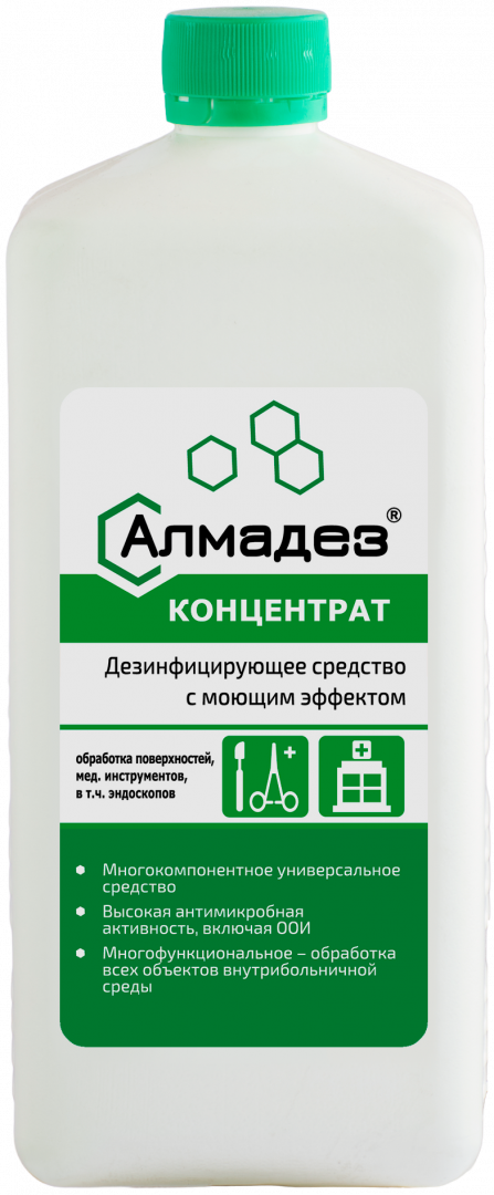 - рабочие растворы средства «Алмадез» — прозрачные, бесцветные, обладают слабым специфическим запахом;