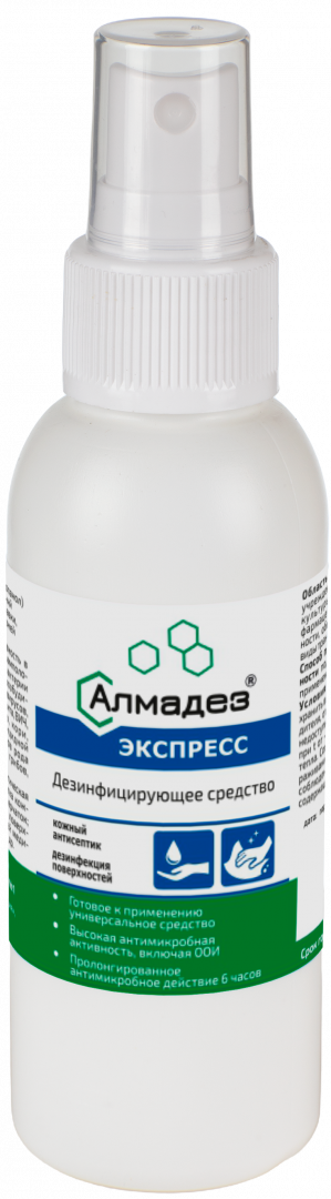 Средство «Алмадез-экспресс» в удобном флаконе 100 мл — это готовый к применению антисептик для мгновенной обработки рук, перчаток, инъекционного поля и небольших поверхностей. Обладает широким спектром активности и высокой безопасностью.